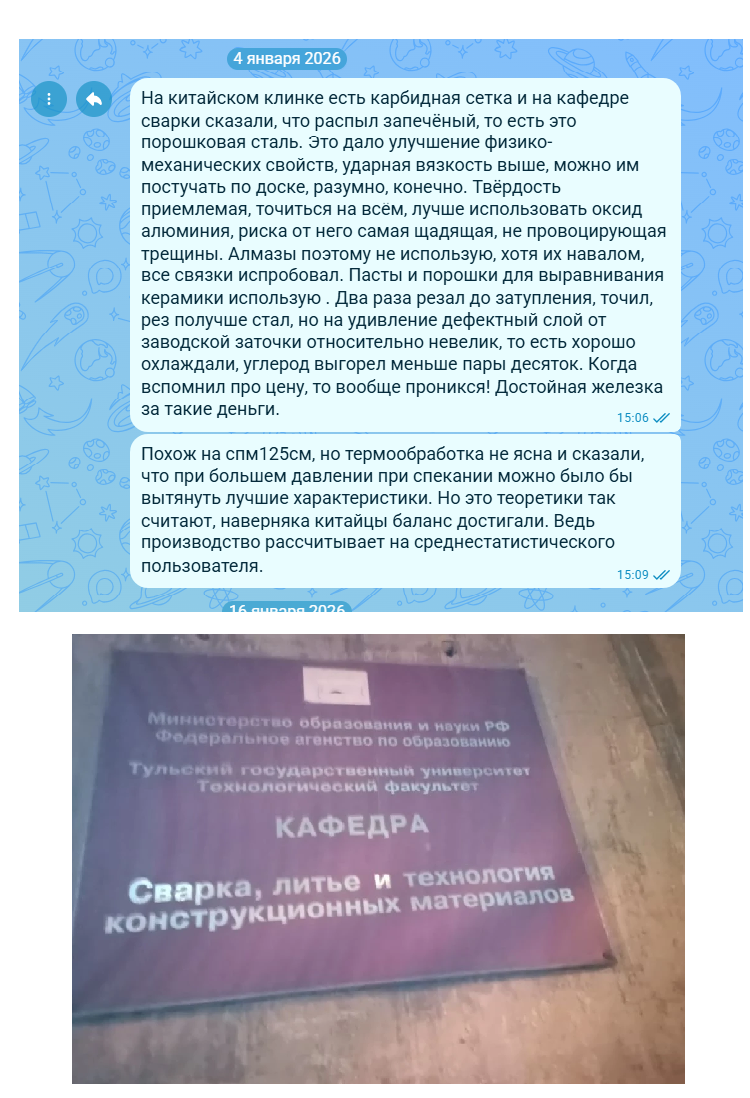 GU-10 порошковая сталь ( долго пытал китайца в июле 2025г., что это за сталь про которую я нигде не могу найти инфу?? - ответ один: "это порошковая сталь местного производства....") Короче - надо тестить))